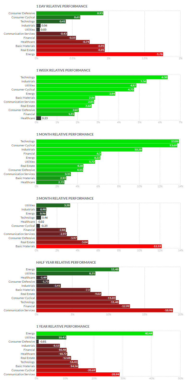 | IT | XLK | 143.9 | -0.2% | 햇빛 | 10.6% | 2.6% | -6.4% |