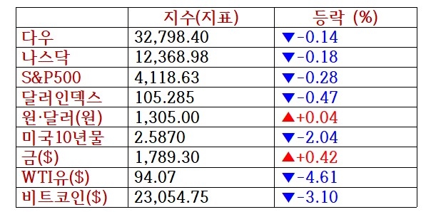 | VIX지수 | 22.84 | 1.51 | 7.1% |