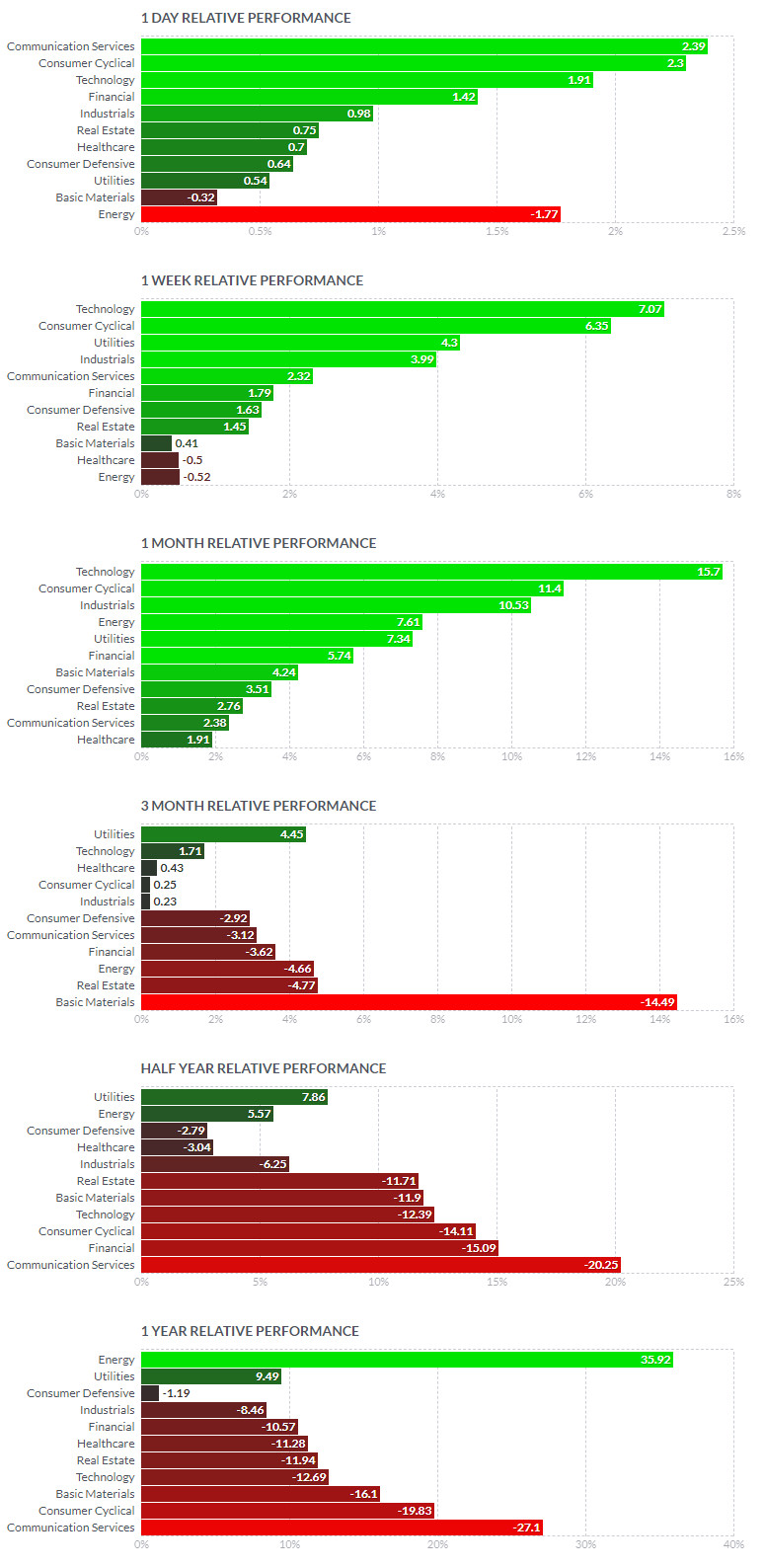•에너지관련주(오일+신재생)를 제외한 대부분의 섹터가 상승