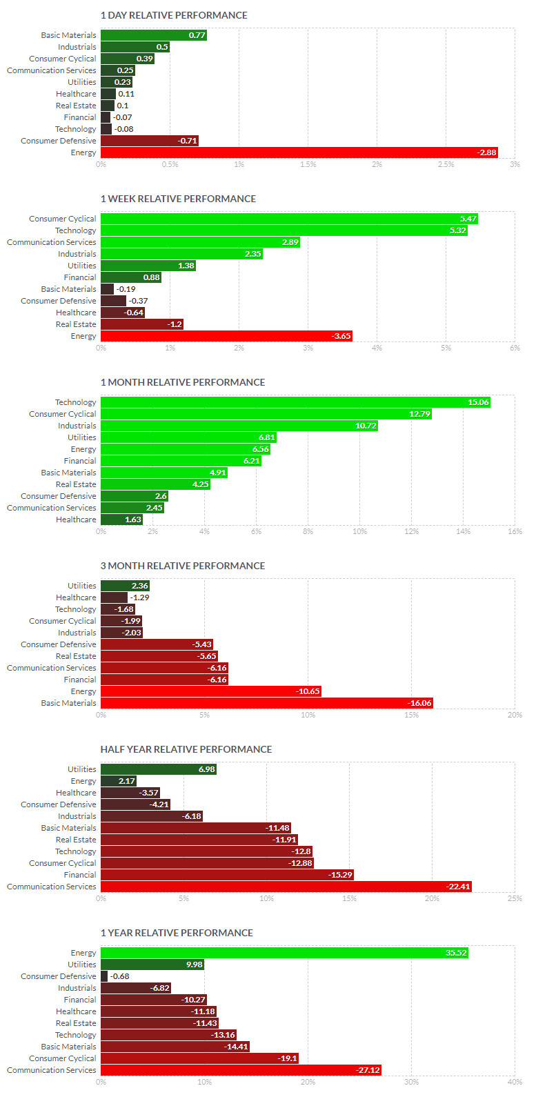 | IT | XLK | 147.4 | 0.5% | 햇빛 | 12.5% | 11.2% | -3.0% |