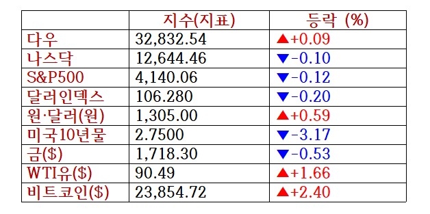 | 지수 | 종가 | 등락폭 | 등락률 | 상승/하락/보합 |