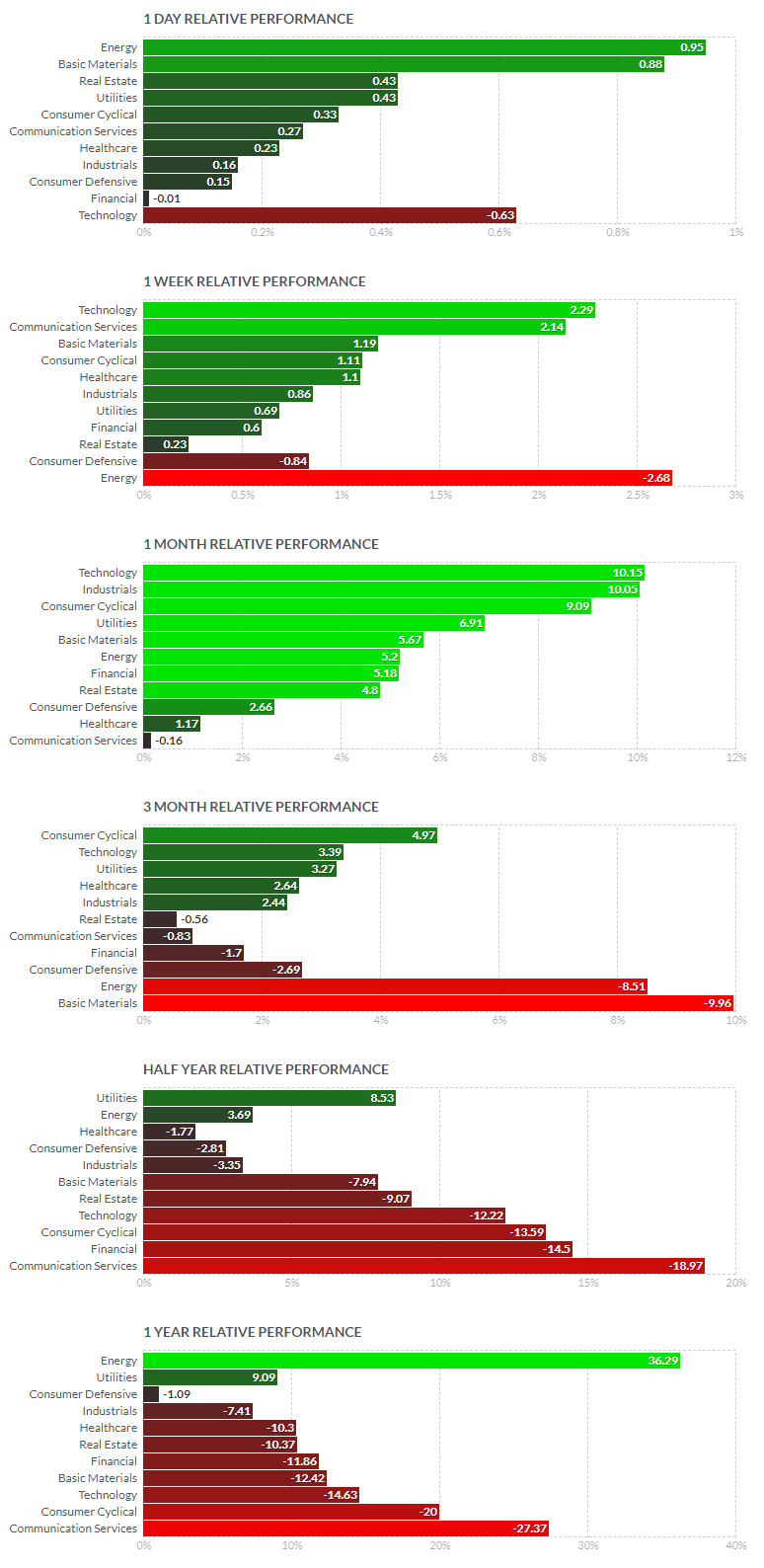 | IT | XLK | 145.8 | -0.9% | 햇빛 | 13.1% | 7.6% | -4.7% |