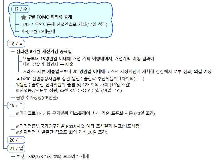 | 8월 18일(목) 증시캘린더 / 해외마감시황 (1) | 2022.08.18 |
