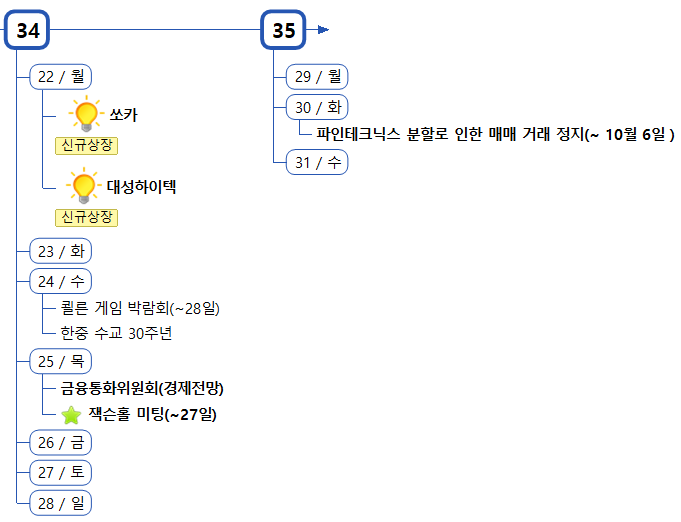 1) 증시캘린더는 개인적으로 관련된 소식을 확인후 작성한 일정이라 변동 또는 오류의 소지가 있습니다.