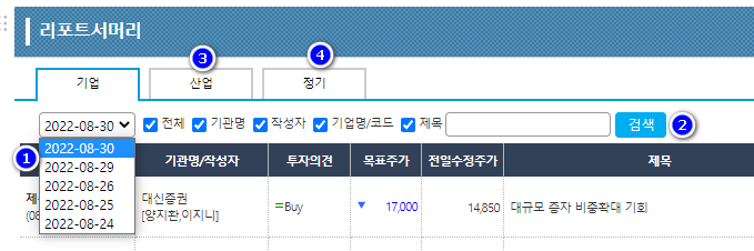 다른 기업의 사이트를 검색후 그 인터넷 주소를 임베드하면 각 기업별로 바로 확인할 수 있습니다.