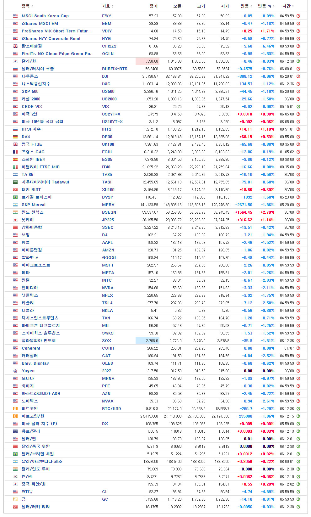 | PHLX 반도체지수 | 2,708.63 | -35.87 | -1.3% | 2/28/0 |