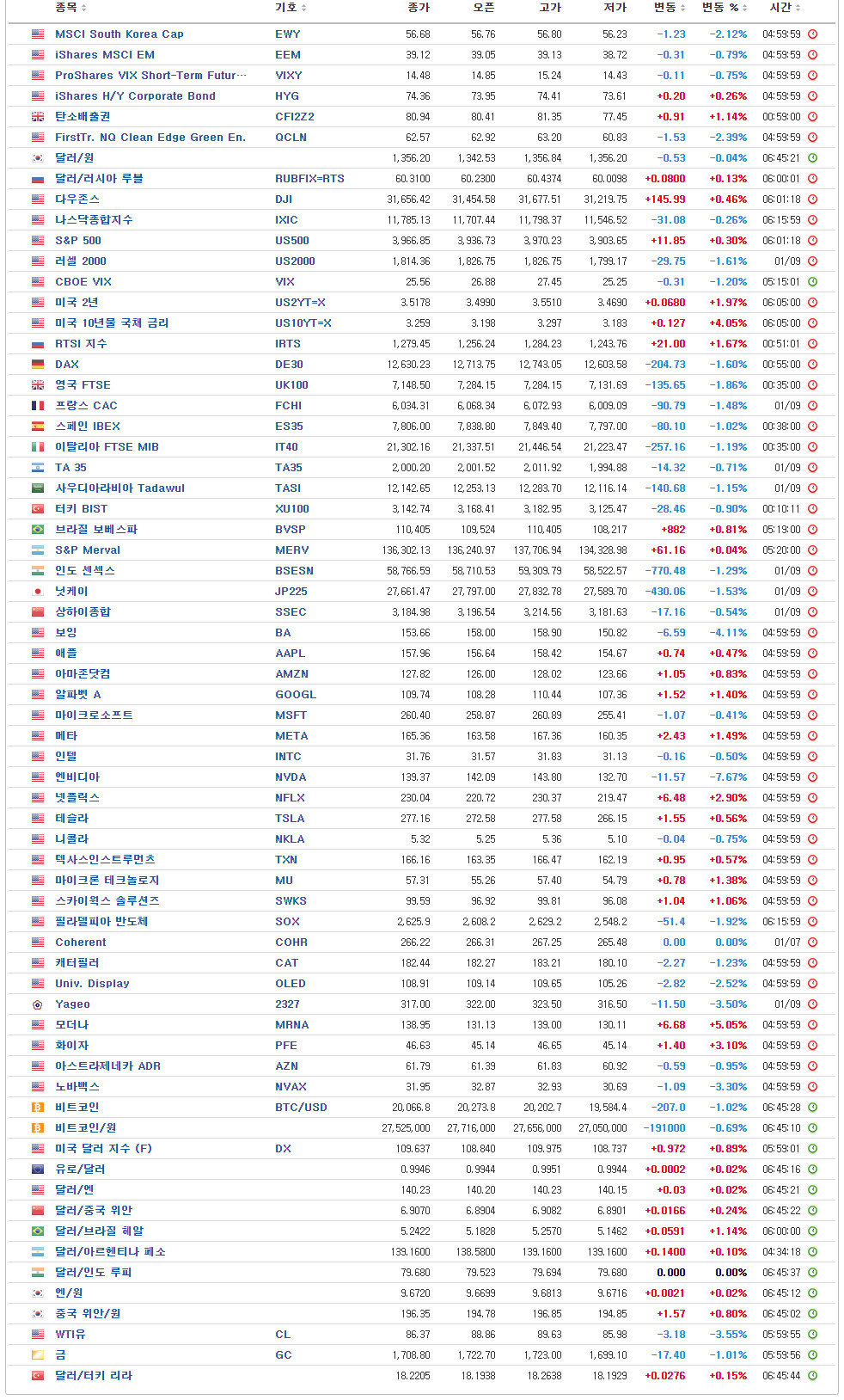 - MSCI 한국지수 ETF: $56.68 (-1.23, -2.12%)