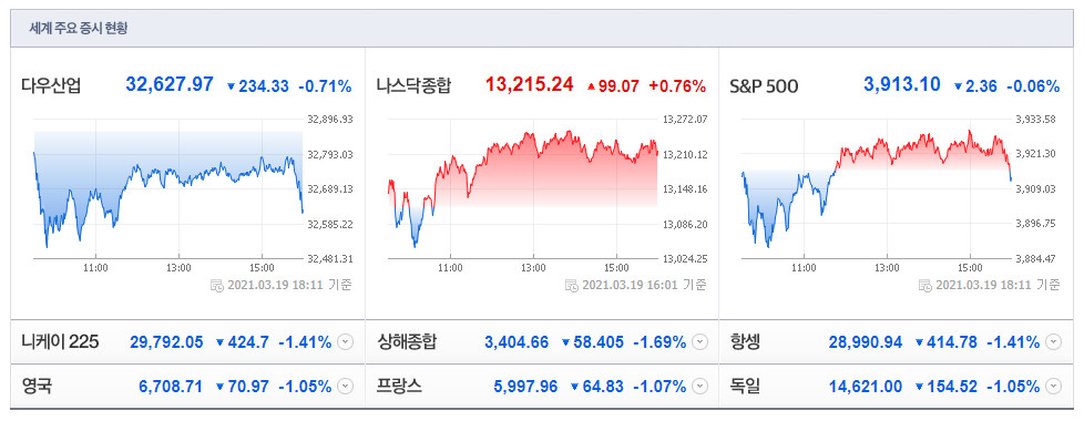 | 3월 22일(월) 해외마감시황, 장전 봐야할 주요뉴스 : 마감시황 (0) | 2021.03.22 |