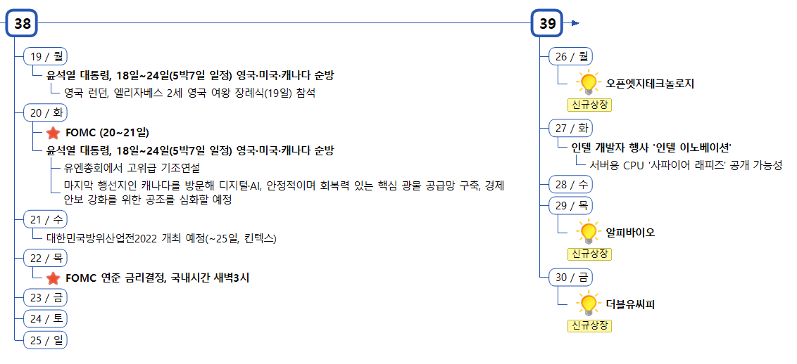 | 9월 19일(월) 증시캘린더 / 해외마감시황 (1) | 2022.09.19 |