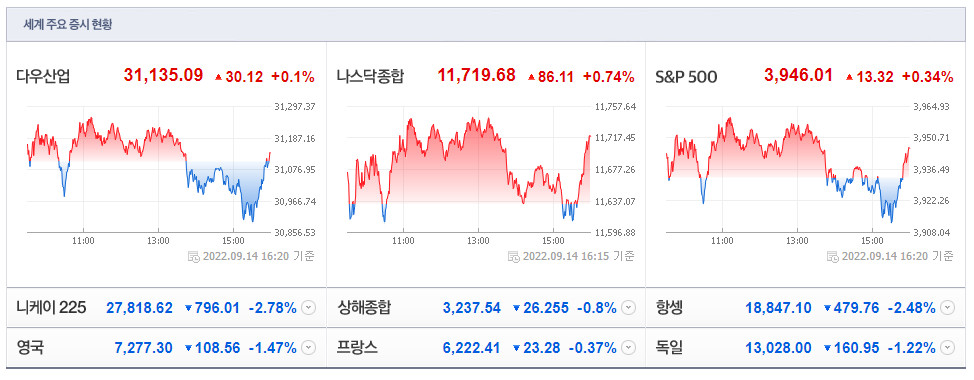 글로벌 주식시장 변화와 전망(9월 15일)
