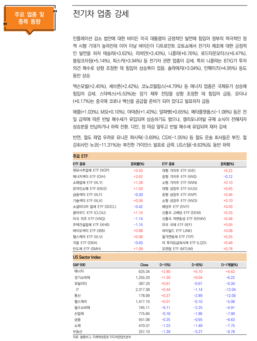 •전일에 이어 전기차+신재생 기업들 시장 주도, IRA 효과로 인한 단기/중기/장기 실적 고성장 가시성이 시장변동성과 무관하게 기업가치를 상승+방어