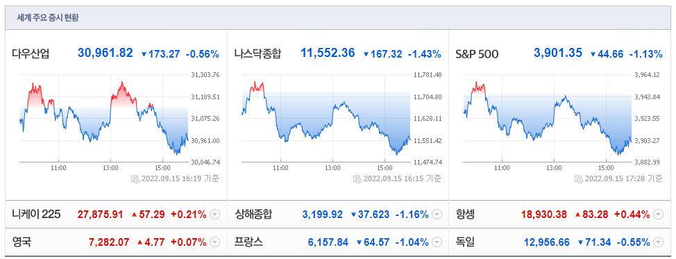 | 9월 15일(목) 증시캘린더 / 해외마감시황 (0) | 2022.09.15 |