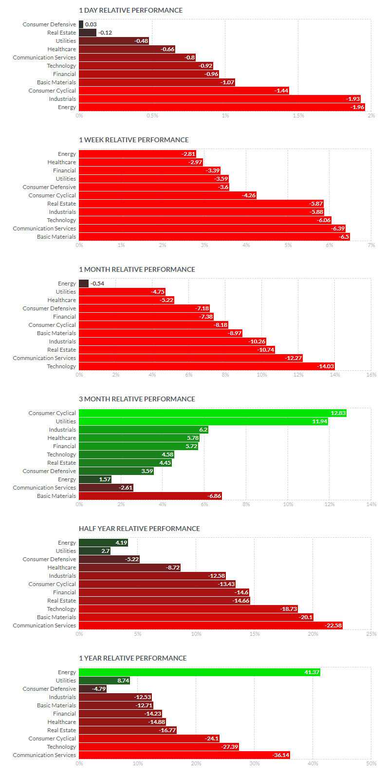 - 뉴욕증시 3대지수 하락마감. 인플레 지속 영향과 페덱스 경기둔화 경고 여파 속 필수소비/ 부동산 제외 전종목 하락 마감