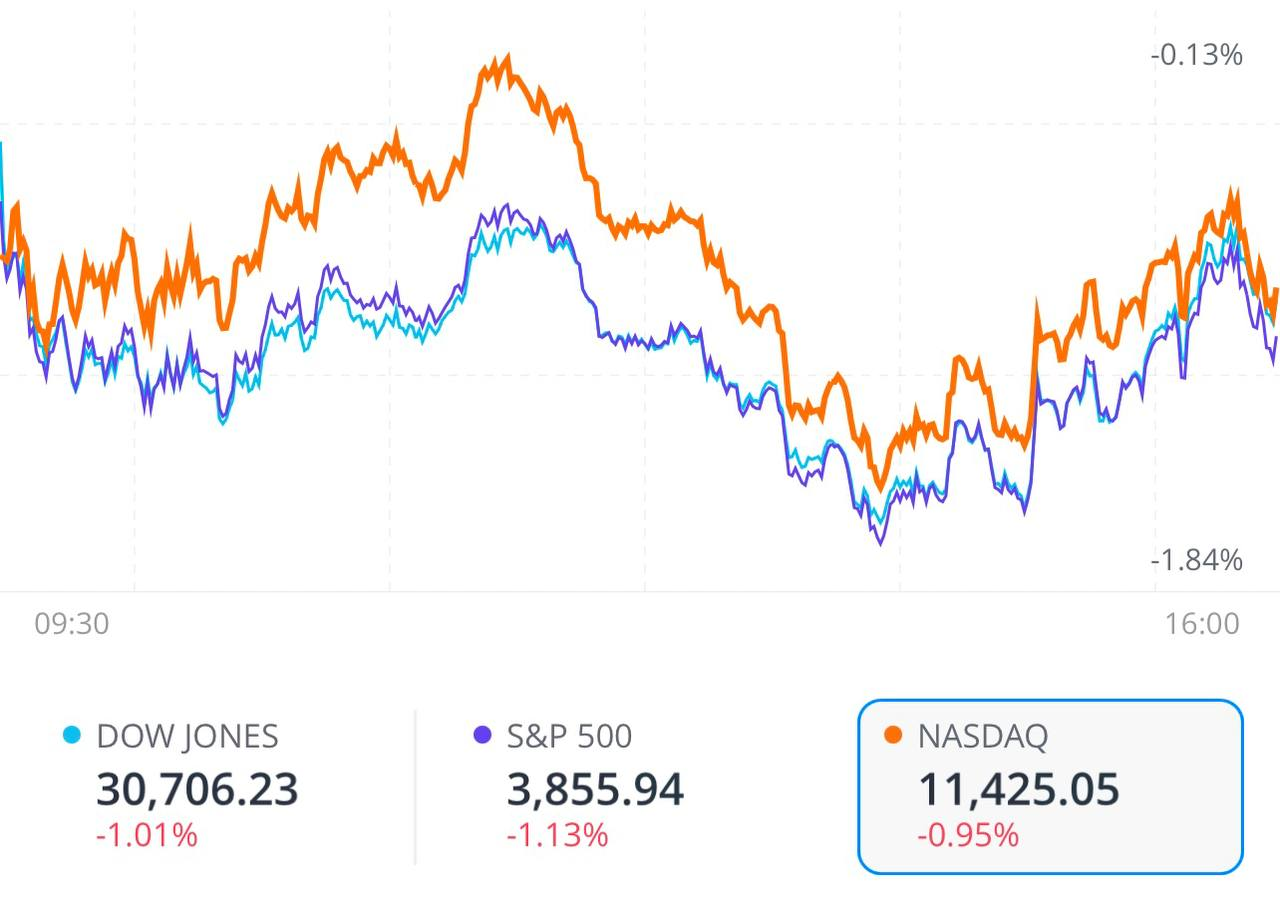 | S&P500 | 3,855.93 | -43.96 | -1.1% | 34/468/1 |