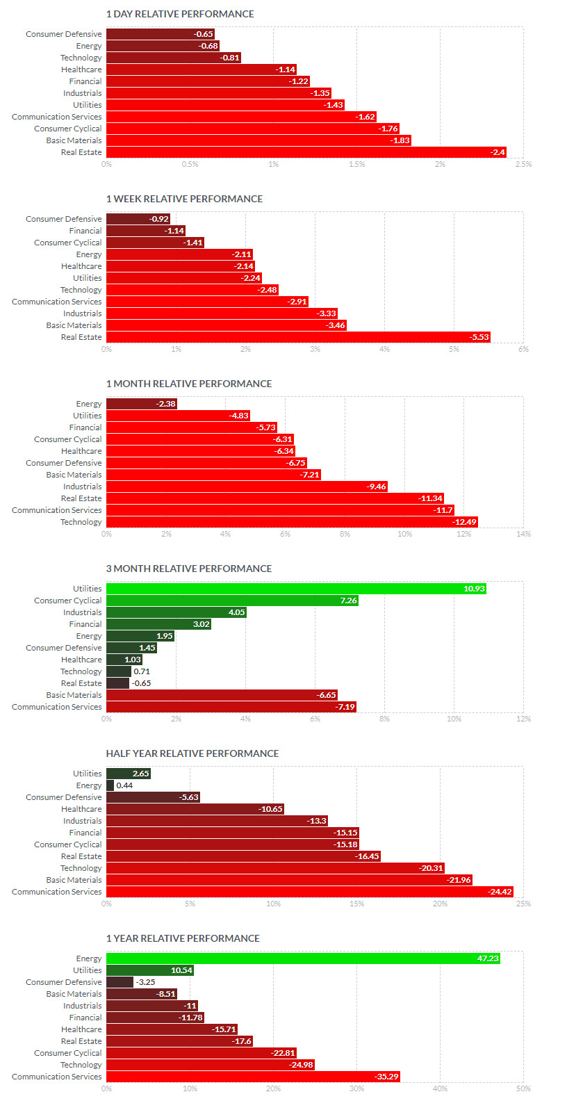 | IT | XLK | 128.7 | -0.6% | 안개 | -9.8% | -2.3% | -16.8% |