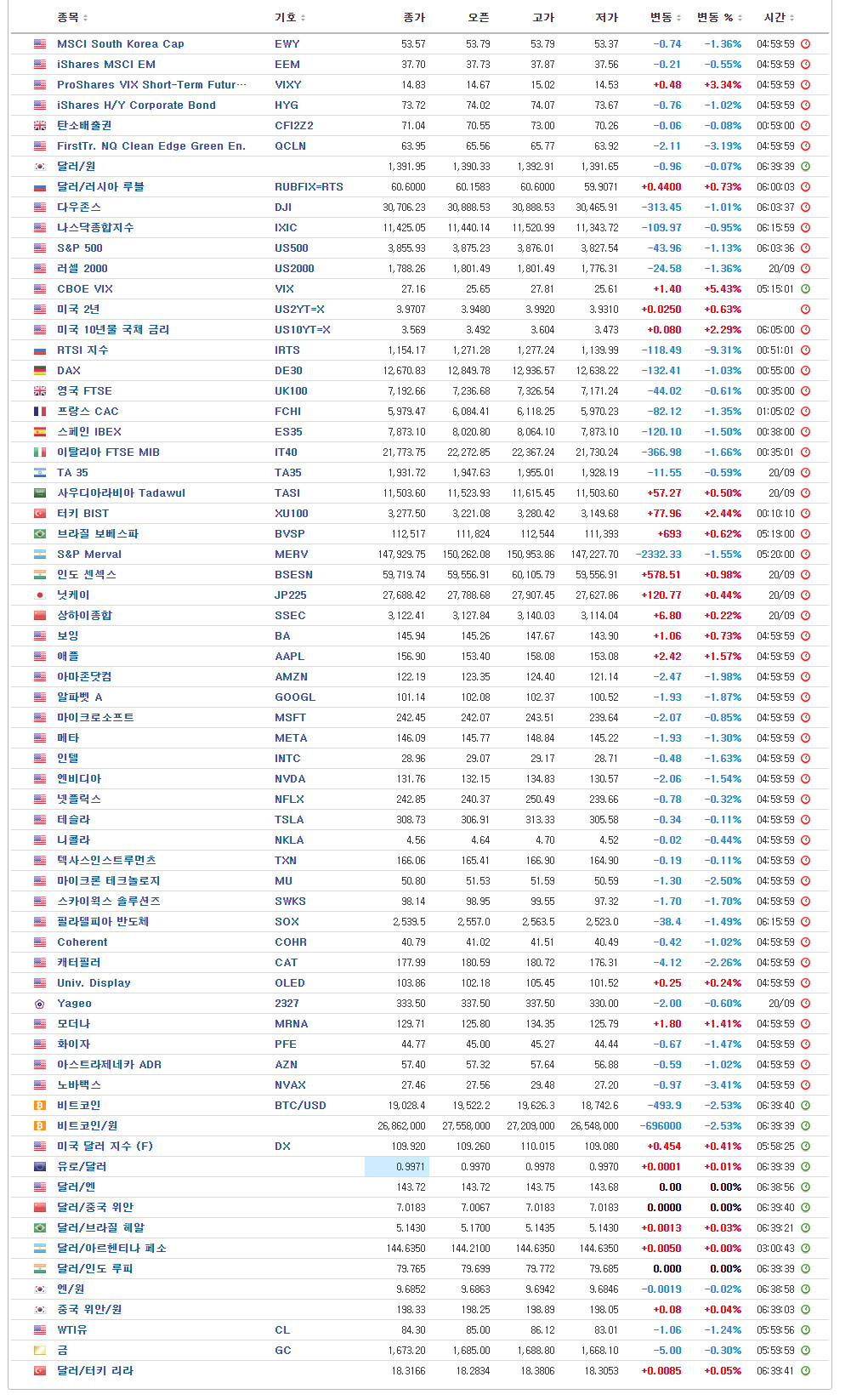 - MSCI 한국지수 ETF: $53.57 (-0.74, -1.36%)