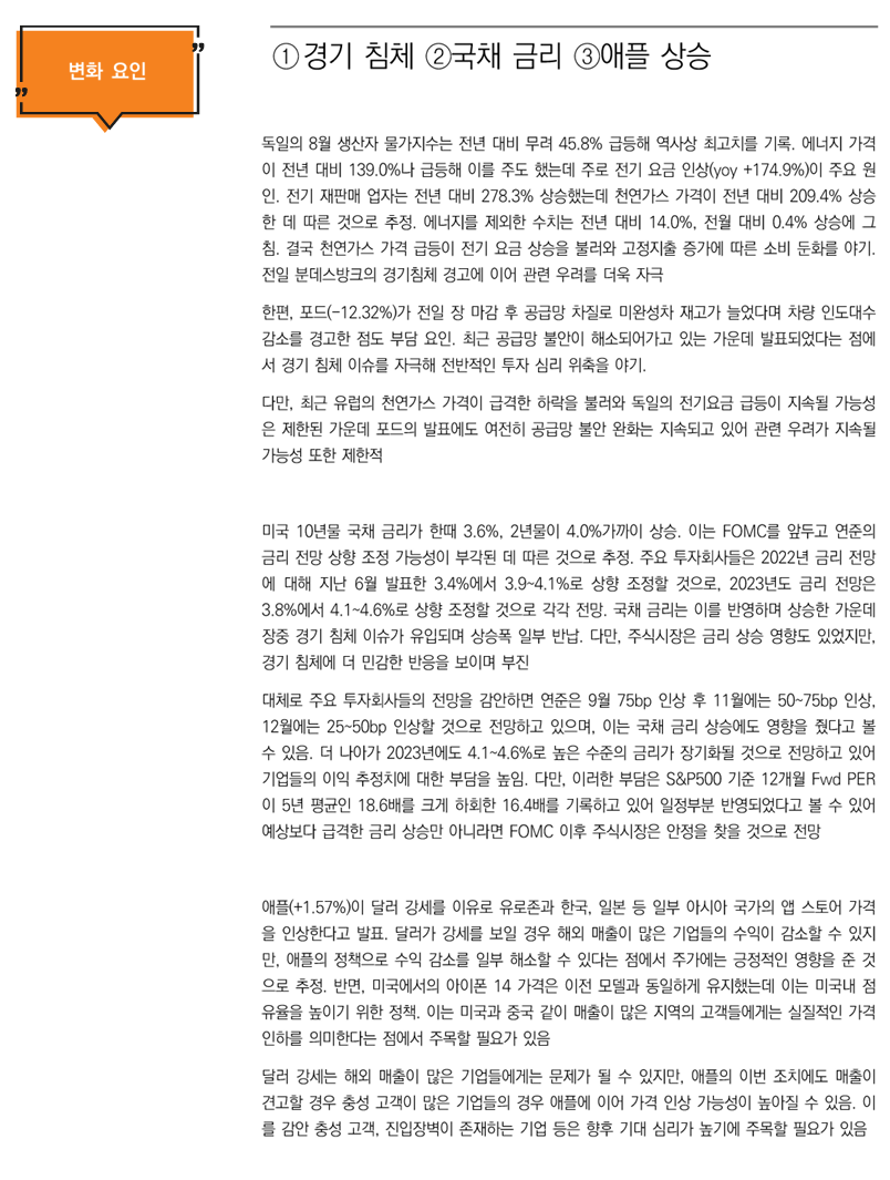 변화요인: ①경기 침체 ②국채 금리 ③애플 상승