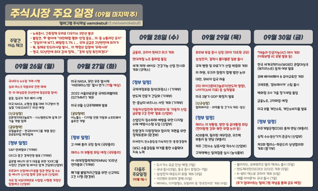 | 9월 28일(수) 증시캘린더 / 해외마감시황 (1) | 2022.09.28 |