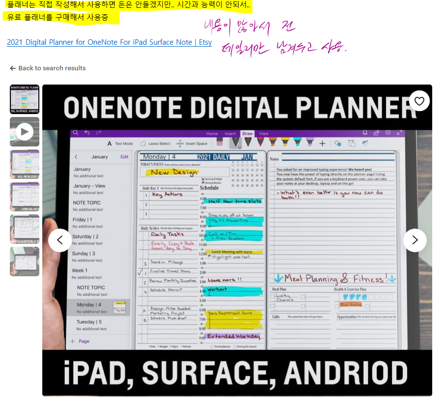 컴퓨터에서 윈도우10용 ONENOTE는 개인 기록 용도로 사용