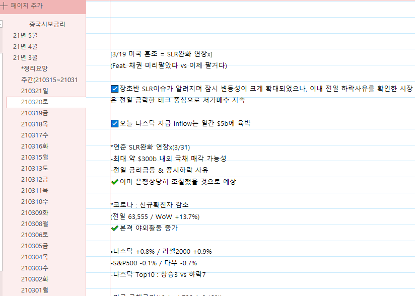 날짜별로 페이지를 만들고, 당일 스크랩할 내용들을 입력하고. 장시작전 오전 7시30분~8시 정도까지