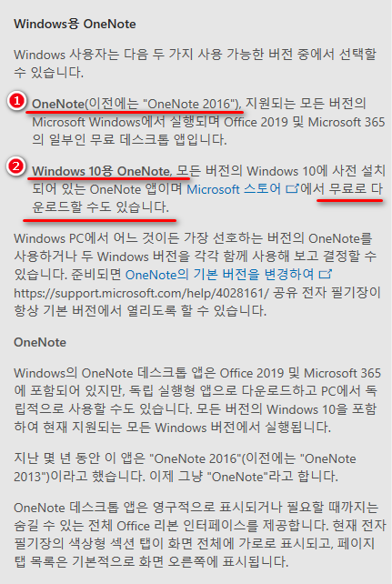 예전부터 사용하던 ONENOTE2016은 이제 더 이상 업데이트는 안되지만