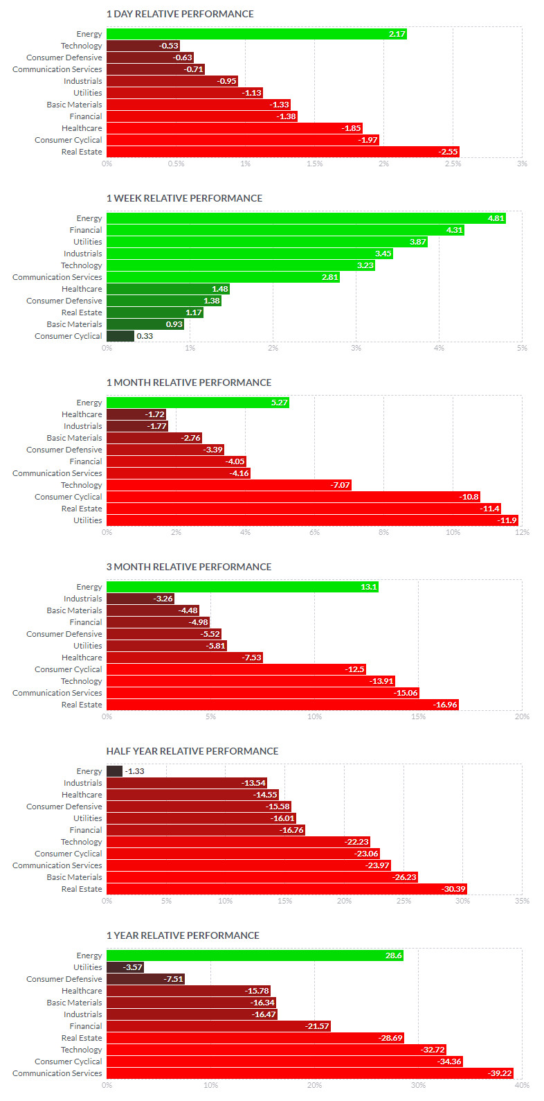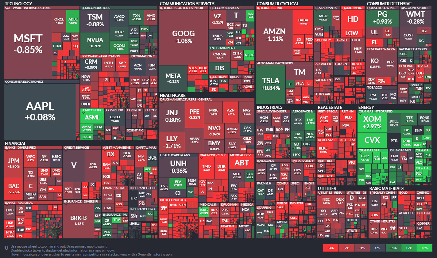 금일 섹터 ETF는 에너지 섹터를 제외한 모든 섹터가 일제히 하락 마감 / 에너지(XLE/+3.0%) ETF는