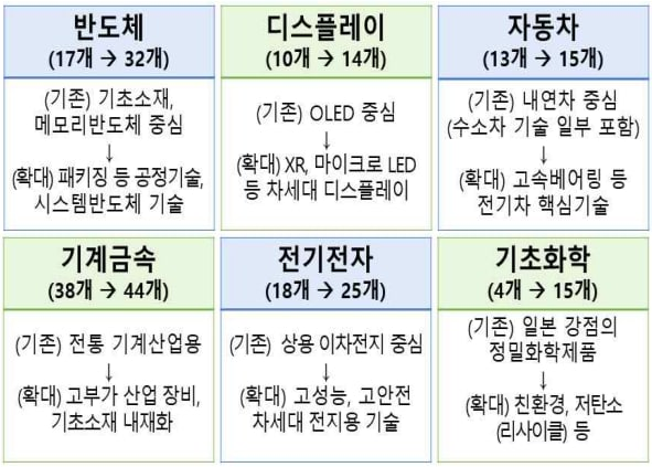 100대 핵심전략기술을 150개로 확대 개편합니다. 추가된 신기술은 아래와 같습니다.