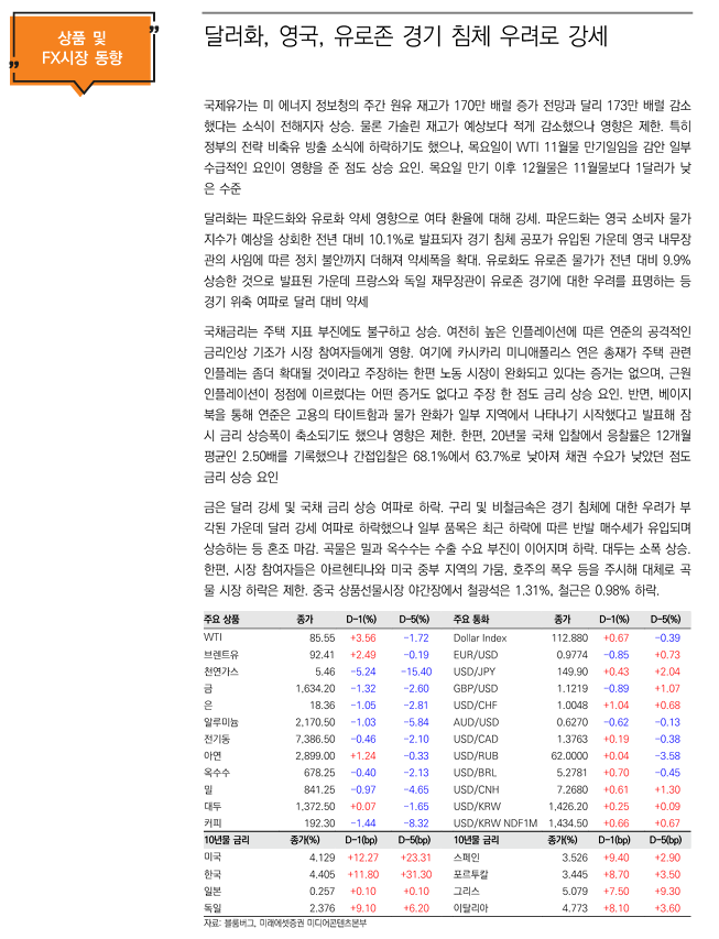 2022년 10월 20일 매크로 데일리