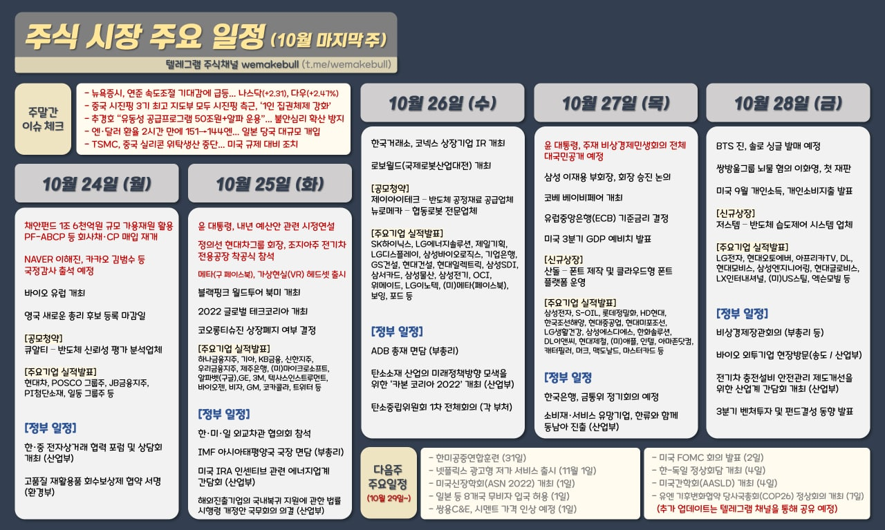 | 10월 25일(화) 증시캘린더 / 해외마감시황 (0) | 2022.10.25 |