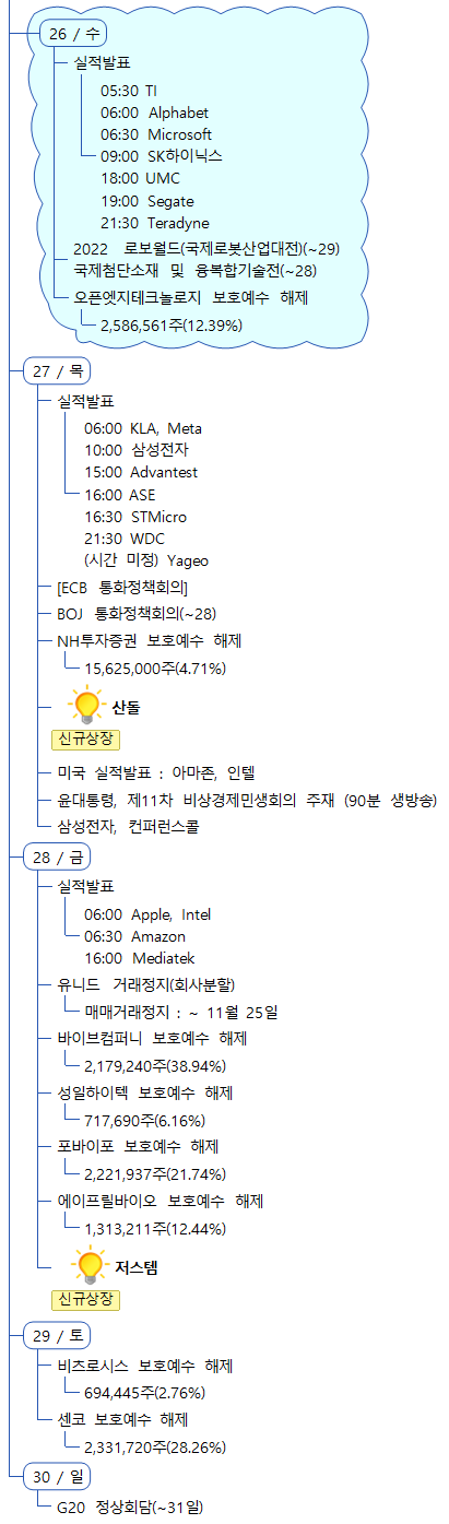 1) 증시캘린더는 개인적으로 관련된 소식을 확인후 작성한 일정이라 변동 또는 오류의 소지가 있습니다.