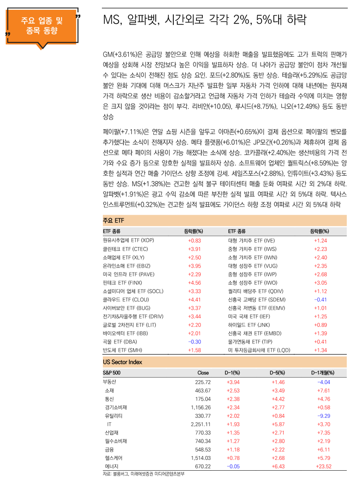 •장마감 후 발표한 Alphabet/Microsoft의 실적은 기대치를 하회하며 시간외 하락폭은 확대중