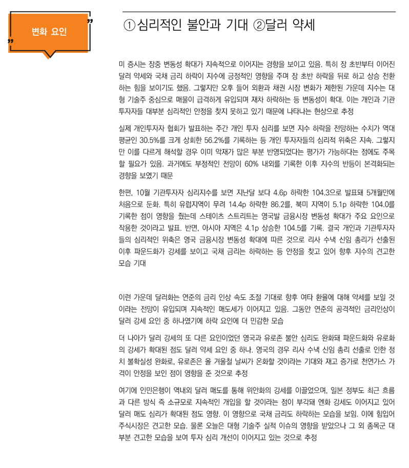 변화요인: ①심리적인 불안과 기대 ②달러 약세