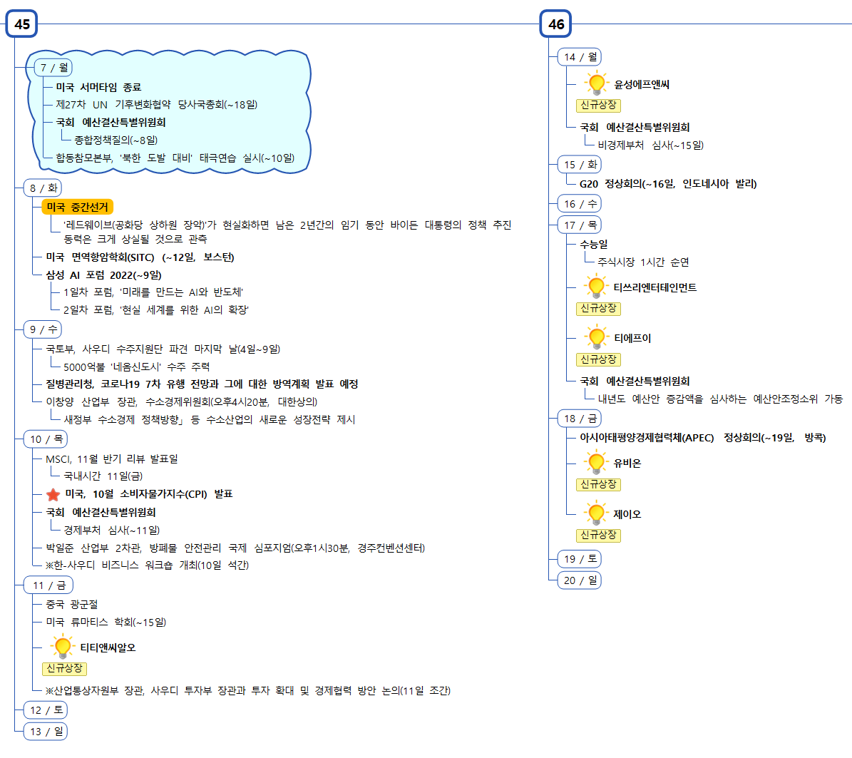 1) 증시캘린더는 개인적으로 관련된 소식을 확인후 작성한 일정이라 변동 또는 오류의 소지가 있습니다.