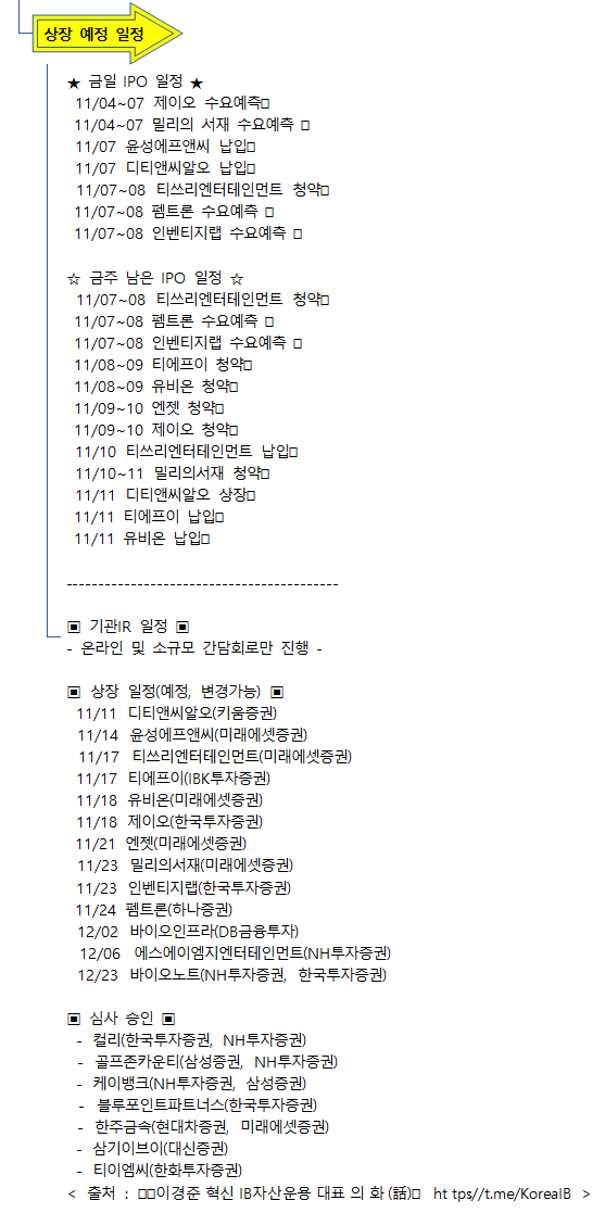 『하루를 여는 이경준 혁신IB자산운용 대표의 IPO Daily💌 - 20221107』