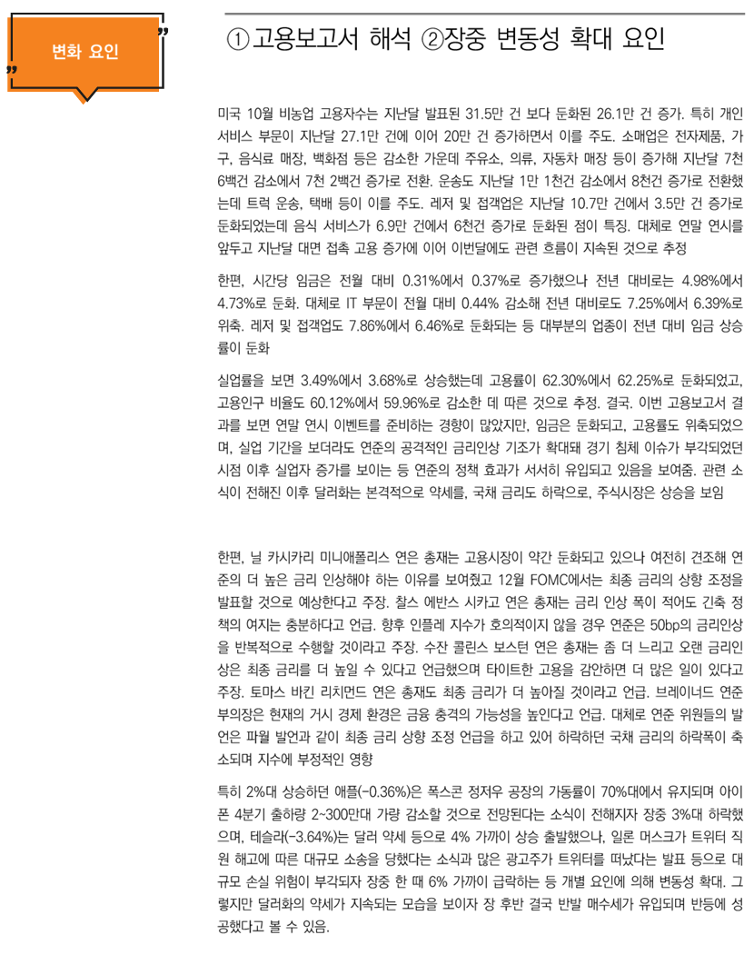 변화요인: ①고용보고서 해석 ②장중 변동성 확대 요인