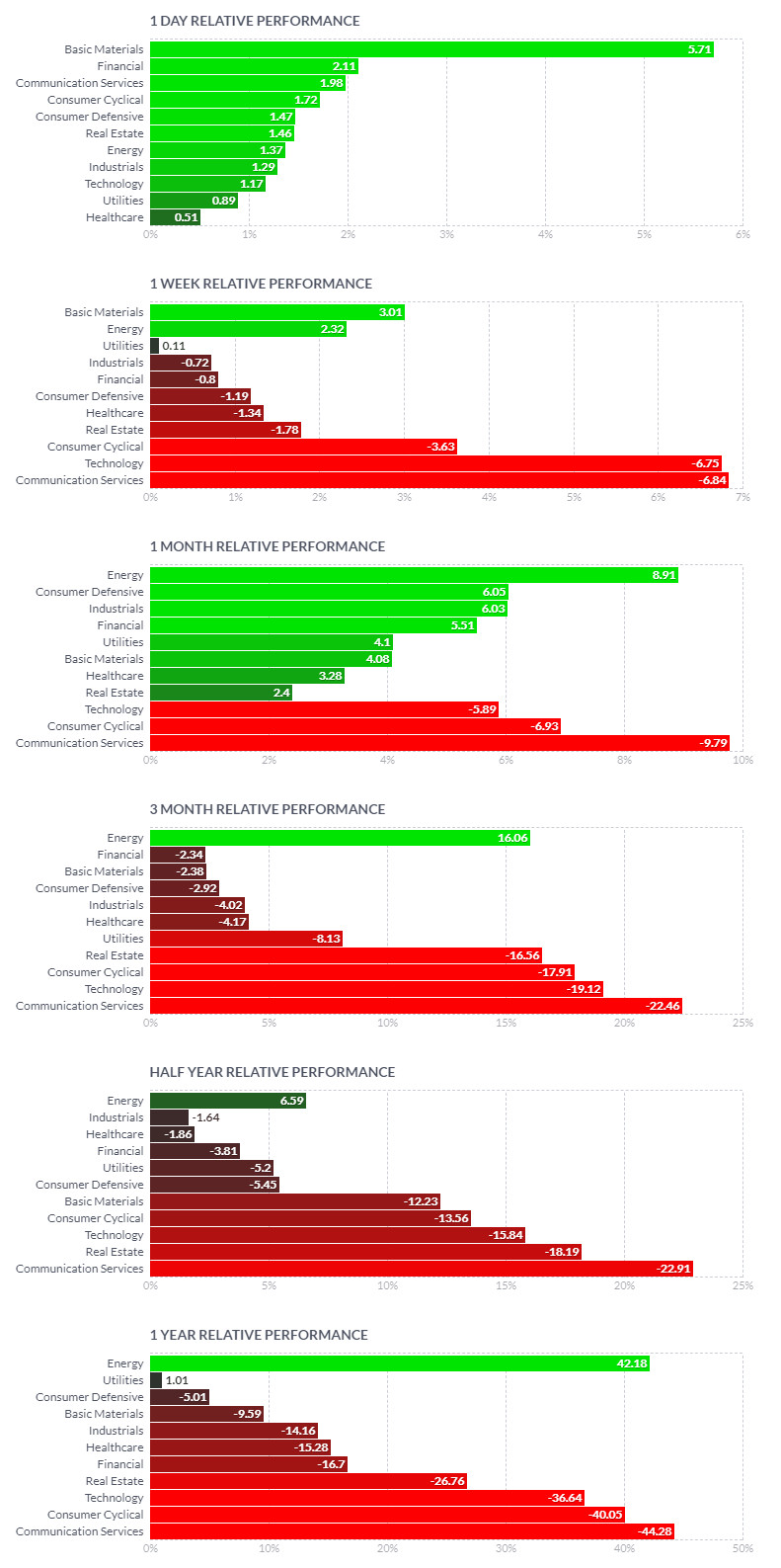 | 금융 | XLF | 33.9 | 1.7% | 햇빛 | 10.2% | -4.2% | -13.7% |
