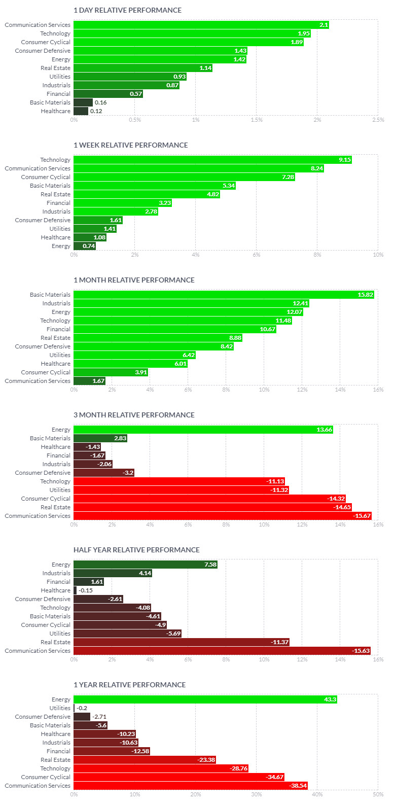 | IT | XLK | 133.6 | 1.21% | 햇빛 | 10.30% | -6.80% | -21.30% |