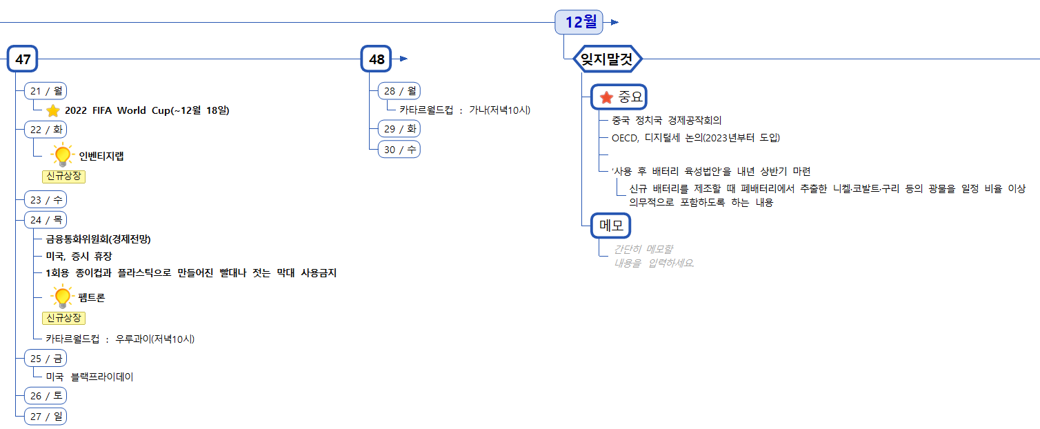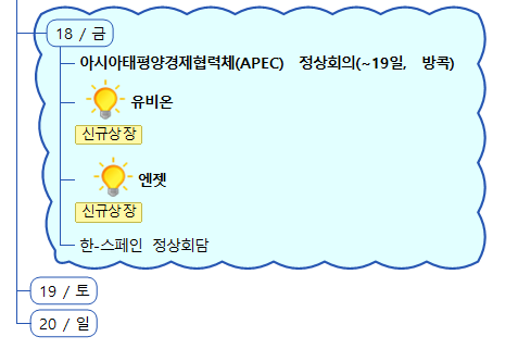 1) 증시캘린더는 개인적으로 관련된 소식을 확인후 작성한 일정이라 변동 또는 오류의 소지가 있습니다.