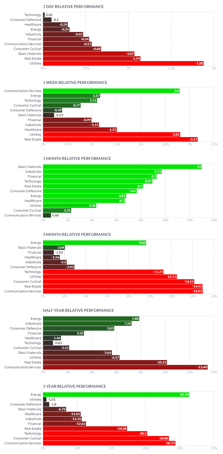 | 자유소비재 | XLY | 140.84 | -1.19% | 햇빛 | -1.50% | -11.60% | -32.20% |