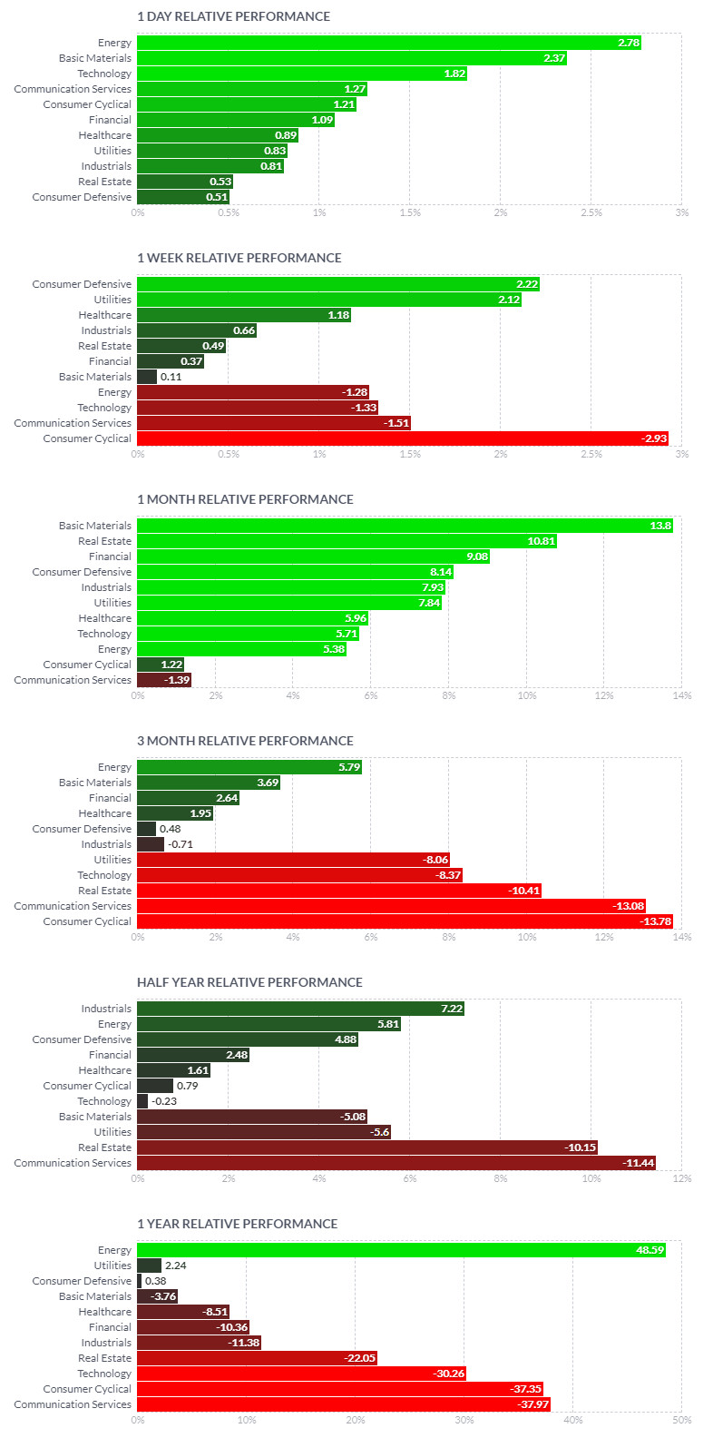 | 금융 | XLF | 35.85 | 1.03% | 햇빛 | 7.40% | 9.00% | -6.10% |