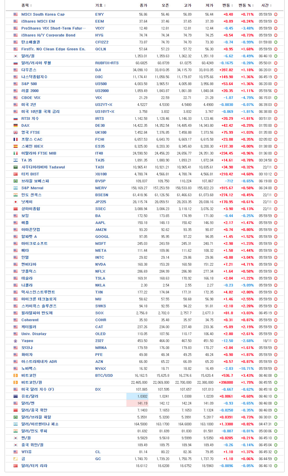 | 11월 21일(월) 증시캘린더 / 해외마감시황 (1) | 2022.11.21 |