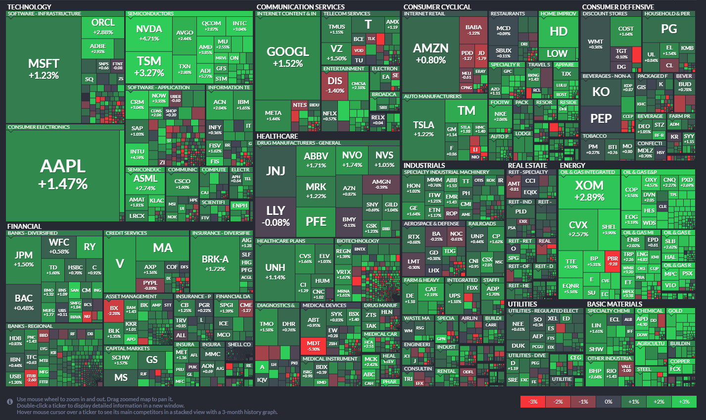 뉴욕증시, 기업 호실적·금리 속도조절 기대에 일제 상승...유가·비트코인도 상승 [출근전 꼭 글로벌브리핑]
