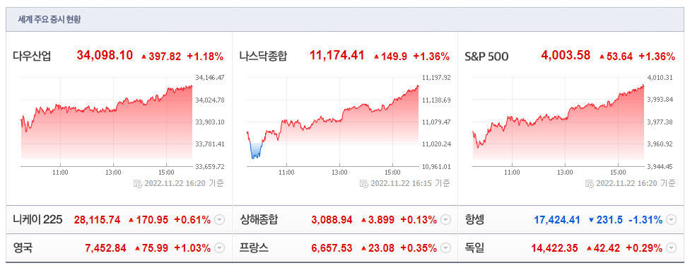 | 11월 22일(화) 증시캘린더 / 해외마감시황 (0) | 2022.11.22 |