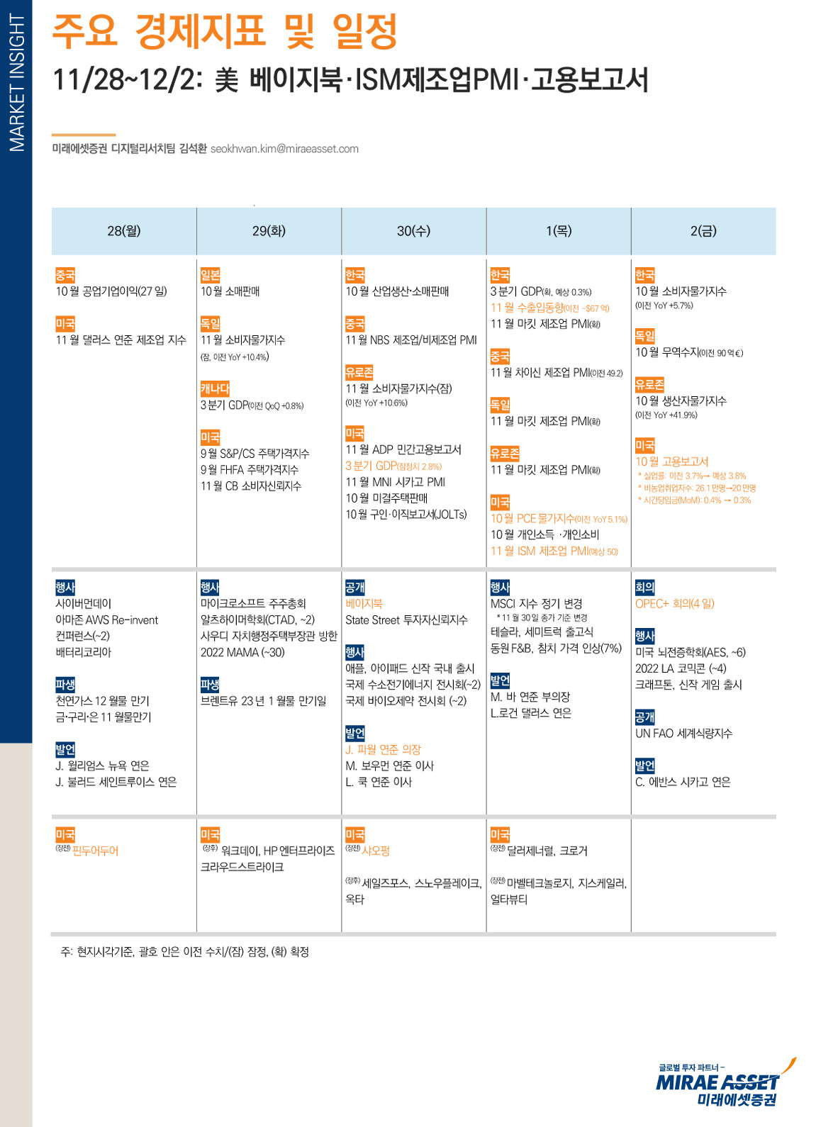 주요 경제지표 및 일정(11월 28일~12월 2일)