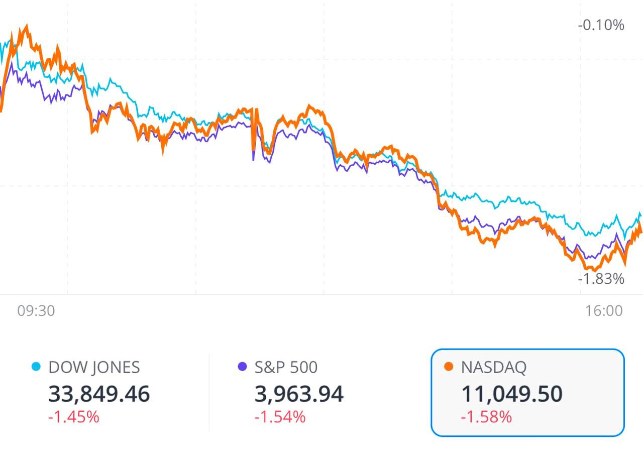 | NASDAQ | 11,049.50 | -176.86 | -1.6% | 849/2571/307 |