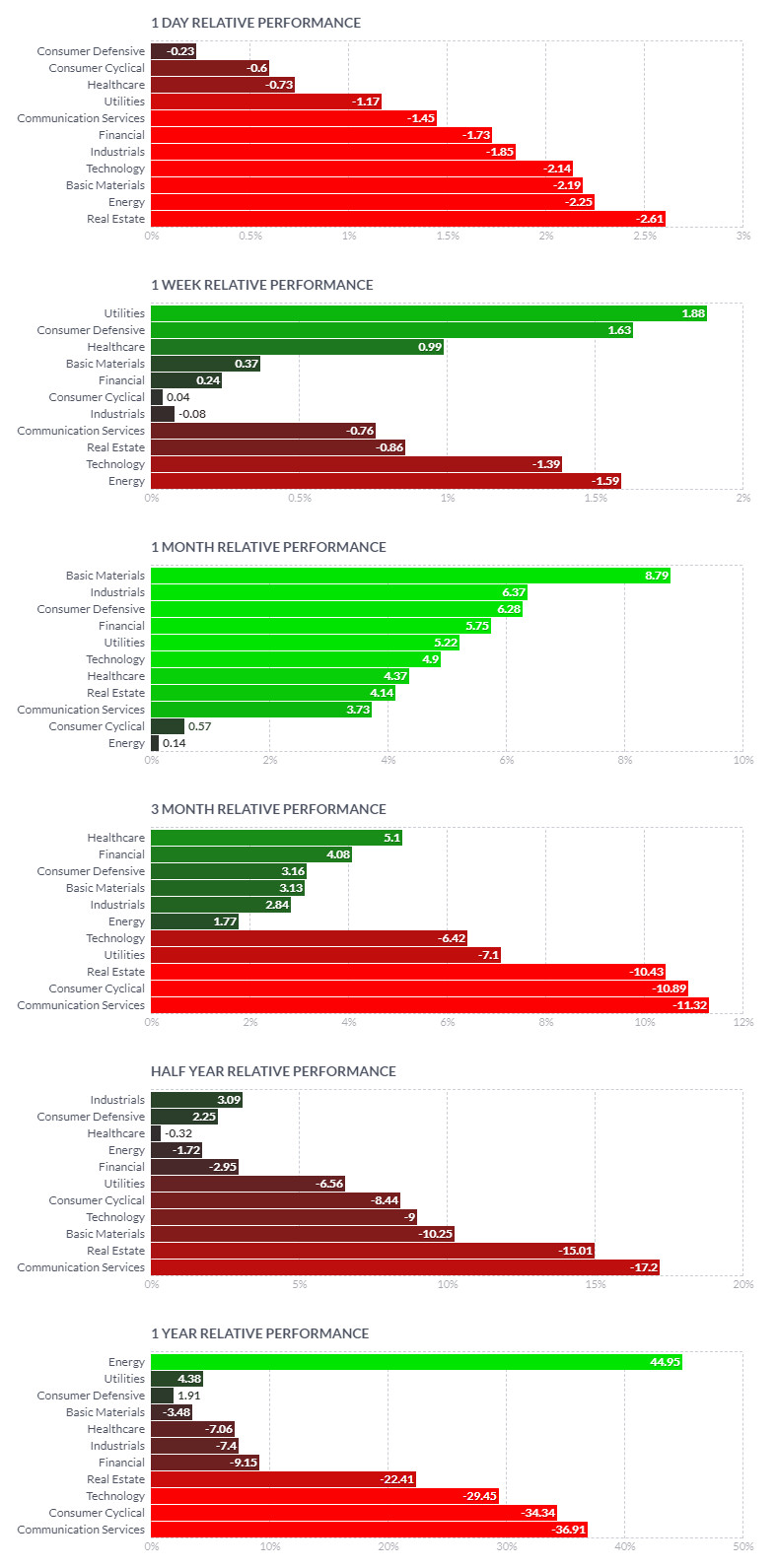 | IT | XLK | 130.7 | -2.2% | 햇빛 | 3.1% | -0.7% | -21.5% |