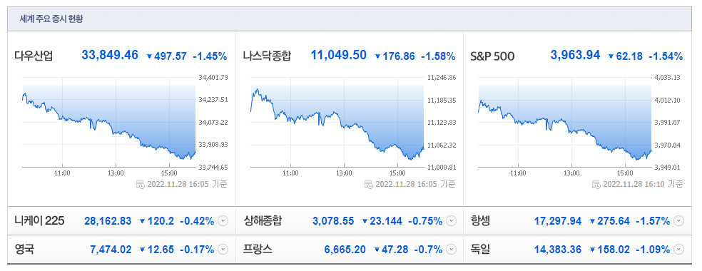 | 11월 28일(월) 증시캘린더 / 해외마감시황 (0) | 2022.11.28 |