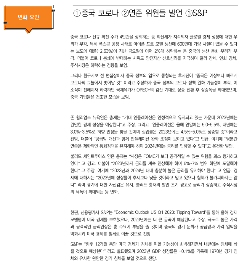 변화요인: ①중국 코로나 ②연준 위원들 발언 ③S&P