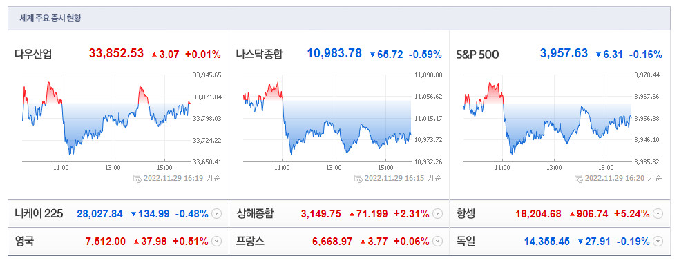 | 11월 29일(화) 증시캘린더 / 해외마감시황 (1) | 2022.11.29 |