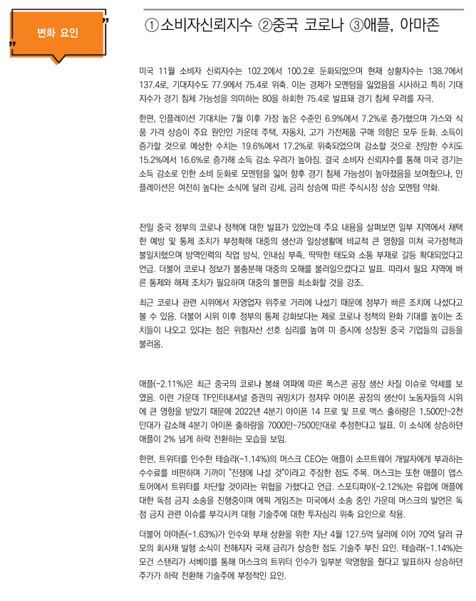 변화요인: ①소비자신뢰지수 ②중국 코로나 ③애플, 아마존